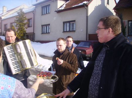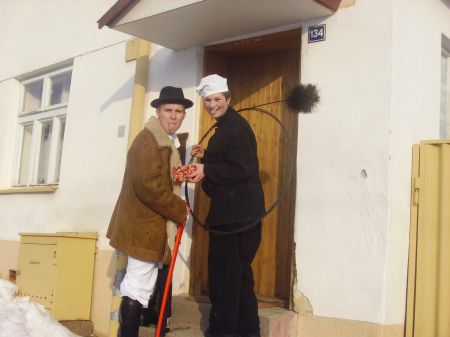 Hodová chasa se rozhodla obnovit tuto tradici a zpestřit tak kulturní dění v naší obci. Celkem 20 postaviček - maškar či šikovných podšablárů obešlo dědinu za veselého zpěvu a vyhrávání části muziky Šarovec, za což se jim dostalo odměny v podobě koblih, chlebíčků či nějakého dobrého pití.