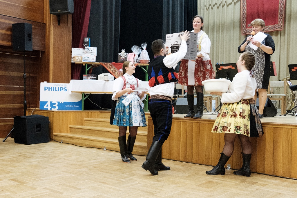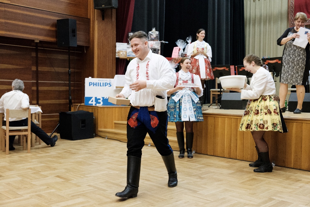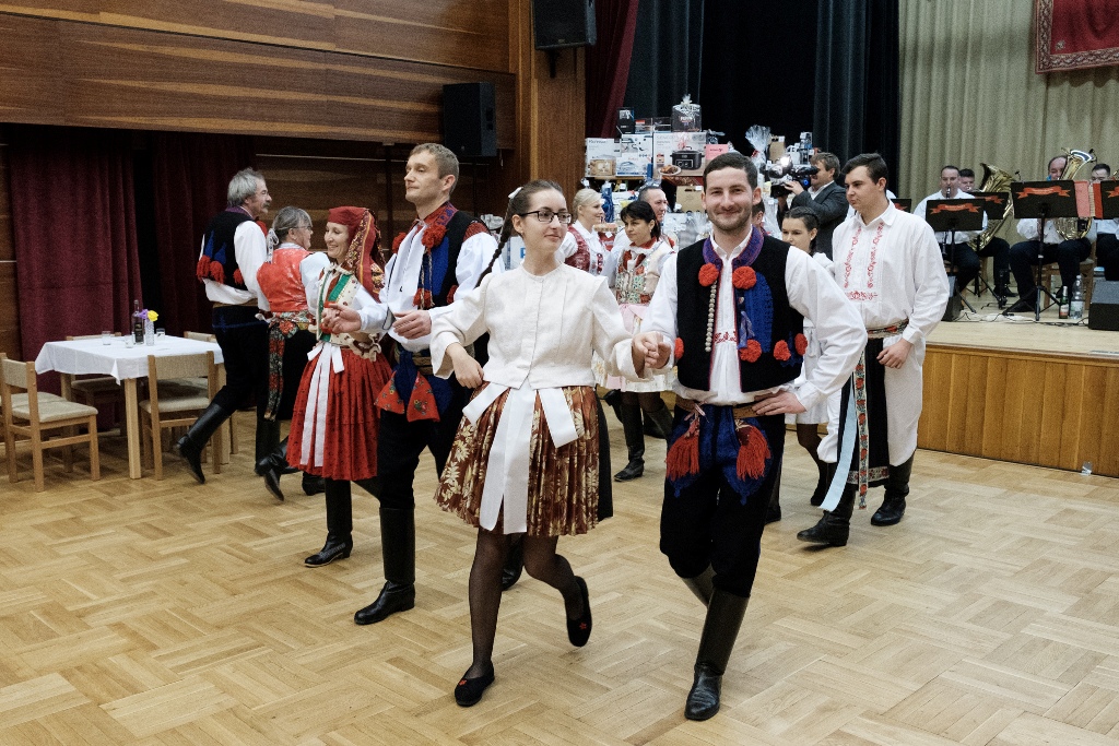 Pestrobarevné kroje, výborná atmosféra, skvělá Hradčovjanka na sále, sympaťáci z CM Pajtáš v přísálí, usměvaví a roztančení návštěvníci, z nichž více než polovina byla v krojích. Takové přívlastky si zaslouží desátý ročník Krojového plesu v režii SPOT Slunéčko. Po oficiálním zahájení plesu předvedlo 16 krojovaných párů předtančení české besedy a zaslouženě sklidili velký potlesk. Lístky do tomboly byly vyprodány během chvilky a není se čemu divit. 152 pěkných cen na přímé výhry a dalších 18 ke slosování lákalo zkusit štěstí. Ještě dlouho po vylosování a předání všech cen se na kulturáku tancovalo, zpívalo a hrálo. Bylo to veselé, rychle to uteklo a tak už se těšíme na další ročník!