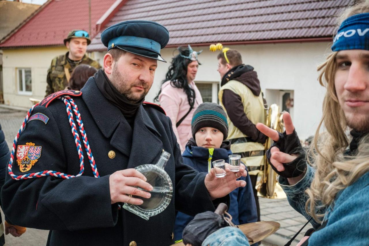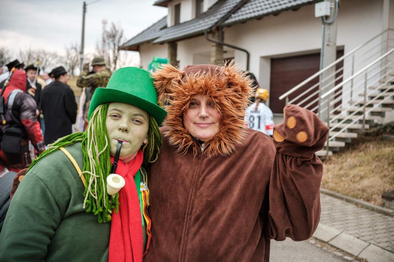 Poslední sobotu před Popeleční středou vyvrcholila doba veselí a radovánek. Ve fašankovém průvodu prošlo obcí několik desítek masek, do kroku, aj podšablárom do skoku, hrála Popovská partyja, ulicemi se rozléhaly výstřely z děla. (Foto Martin Šuranský)